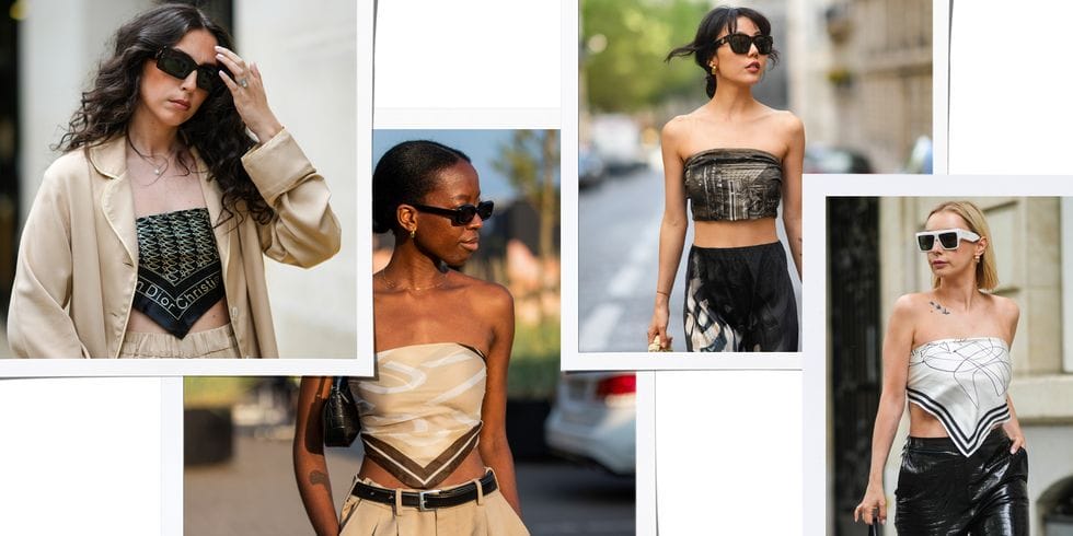 The same scarf tops Beyoncé and Christina Aguilera once wore for early aughts performances have made their way back into the fashion zeitgeist. Celebrities are wearing the shoulder-baring styles much like they did before—Rihanna most recently, in a Harley Davidson halter by Conner Ives—but the scarf top’s return has a modern bent. Many women are embracing DIY strapless tops folded from scarves instead of buying ready-made blouses. (Just check Instagram and TikTok, where tutorials for folding and wearing scarf tops have views in the millions.) The scarf top’s return is more than a Y2k revival for the revival’s sake: Since any square scarf can be folded into a strapless top or a bandeau, it’s a style that’s both practical and endlessly personalized.