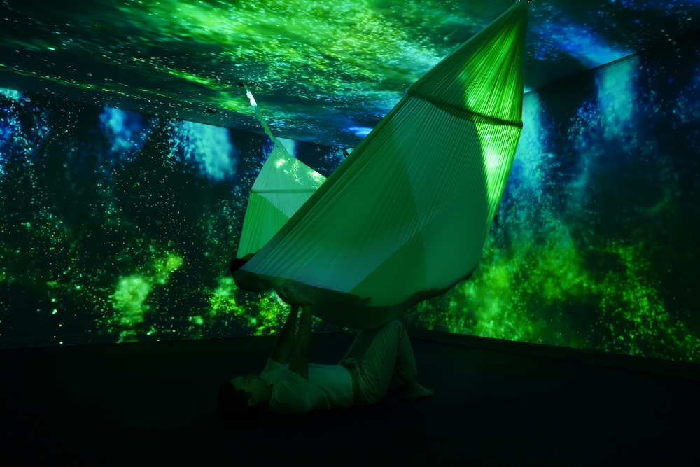 Suspended mid-air, the therapist guides you through gentle swaying, assisted stretching and soothing touch designed to decompress the spine and allow energy to move more freely through the body. The immersive lightscape surrounds you entirely, drawing the nervous system into its parasympathetic state. Being moved through the air while drifting through shifting light sounds as though it might be disorienting. In practice, it was one of the most grounding and unexpectedly peaceful things I have ever experienced. There is simply nothing else like it, and if you find yourself at TIA, it is a non-negotiable.