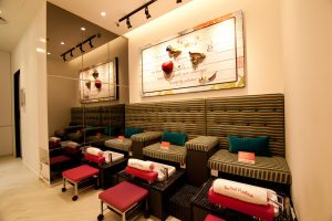 Finding inspiration in the most natural of ingredients, you can look forward to a luxurious manicure and pedicure treatment. To start, a gentle soak soothes hardworking hands and feet, while an invigorating scrub infused with rice powder and mandarin essence exfoliates away dry skin. A restorative mask enriched with shea and cocoa butter intensely hydrates within heated mittens and booties, before leaving skin renewed with an indulgent massage of shea butter, avocado oil, and mandarin essence. The 200 shades of polish to choose from after the decadent session? That’s just the cherry on top of the cake.