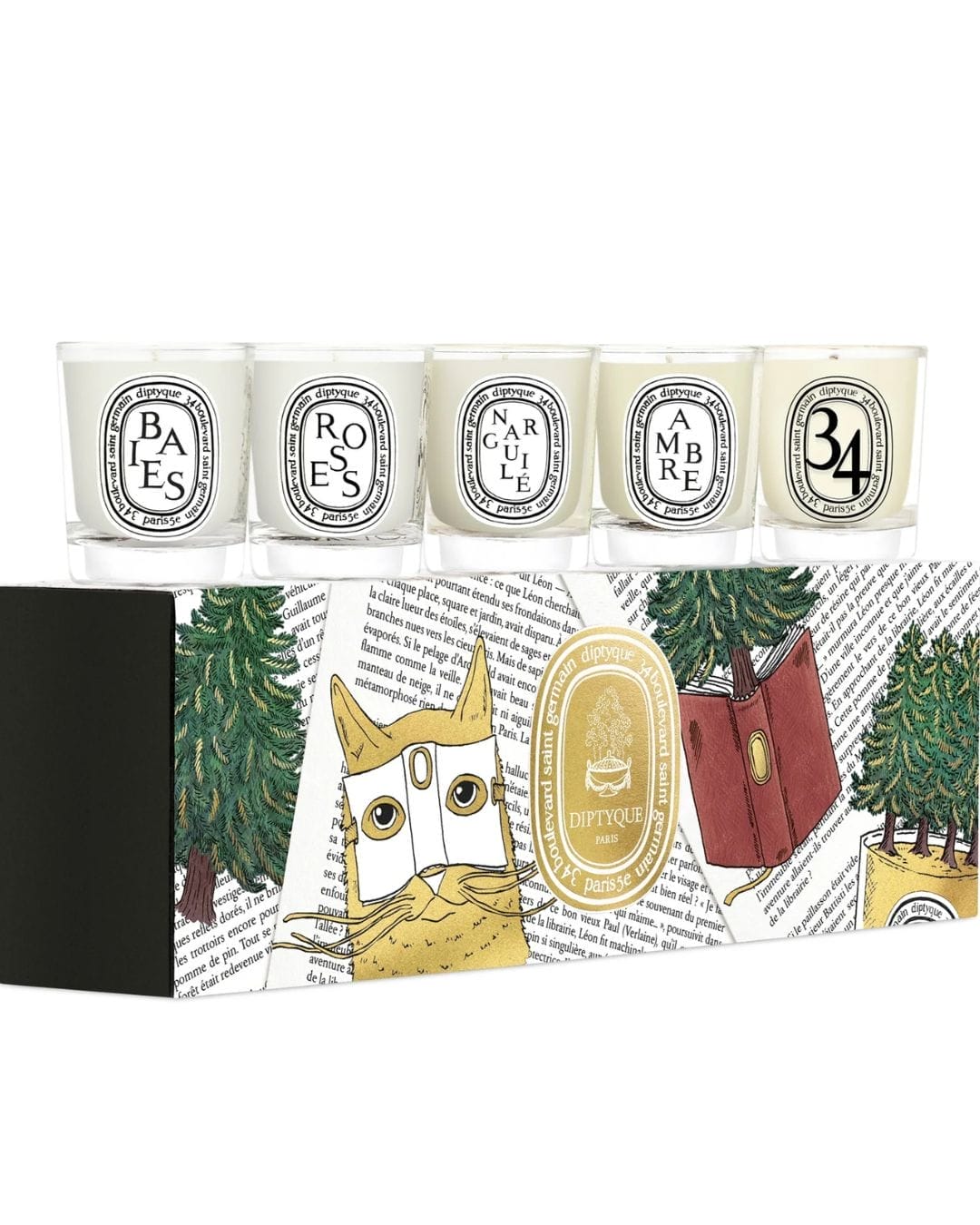 Diptyque’s Five Miniature Candles Set offers a concise overview of the Maison’s most recognisable scents, including Baies, Roses, 34 Boulevard Saint Germain, Ambre and Narguilé. Each candle brings a different mood, allowing you to move easily between fresh, floral and warmer notes.