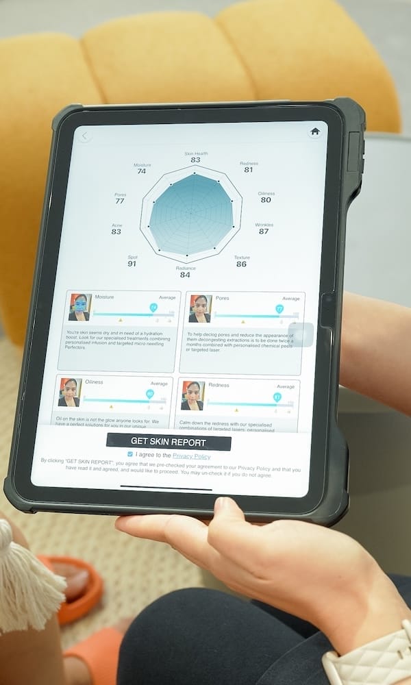 The experience begins with an AI-powered skin scan that analyses hydration, texture, and even your skin’s biological age. It’s an insightful process that helps determine exactly what your complexion needs that day, because no two visits—or faces—are ever quite the same.