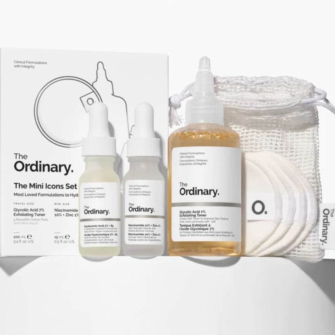 This trio highlights The Ordinary’s most recognisable formulas, packaged in travel-friendly sizes. The inclusion of reusable cotton pads makes the set especially handy for on-the-go routines. Together, the exfoliating toner, balancing serum and hydrating drops offer a simple way to brighten skin and refine texture.