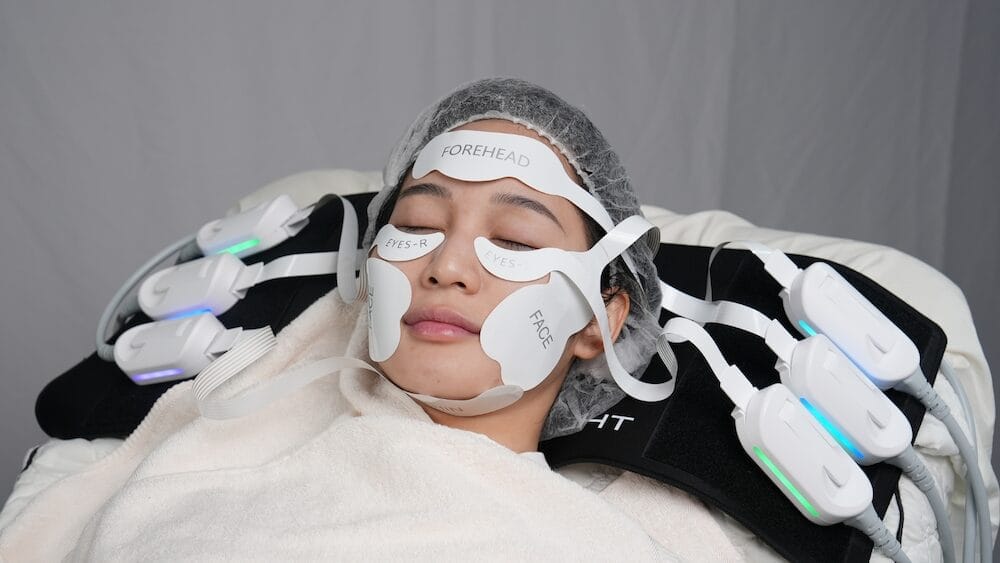 In just half an hour, EMPulse™ works on both the skin and the muscles beneath it—a rare combination for a non-invasive treatment. The experience feels more like a facial workout than a facial itself, but one that leaves you relaxed rather than sore. As the device is placed on the face, gentle pulses contract the muscles while a soft warmth spreads through the skin. It is oddly comforting—a sensation clients often describe as a “warm hug” for the face.