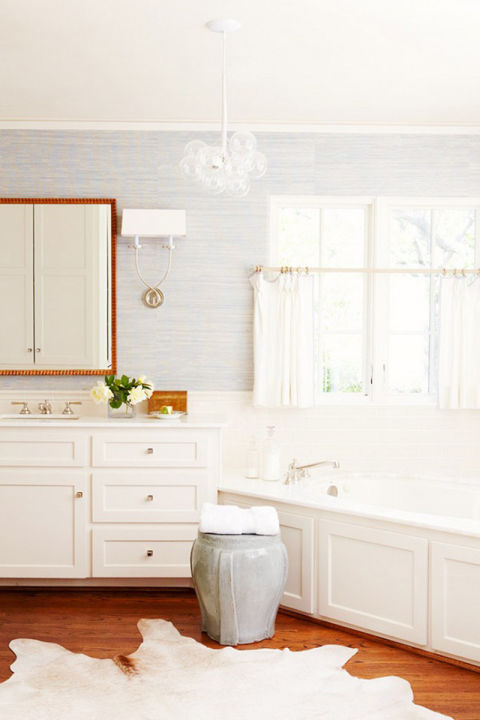 Think outside of the box when it comes to lighting, like an art deco chandelier in all glass; Image courtesy of Collins Interiors By Anne Lee on June 27, 2016 in