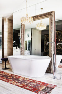 Not only does a mirror open up a room, but one that’s oversized with gilded tones looks nothing short of regal; Image courtesy of David Hicks By Anne Lee on June 27, 2016 in