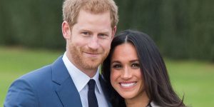 Prince Harry and Meghan Markle talking about Princess Diana’s diamonds that are in Meghan’s ring.