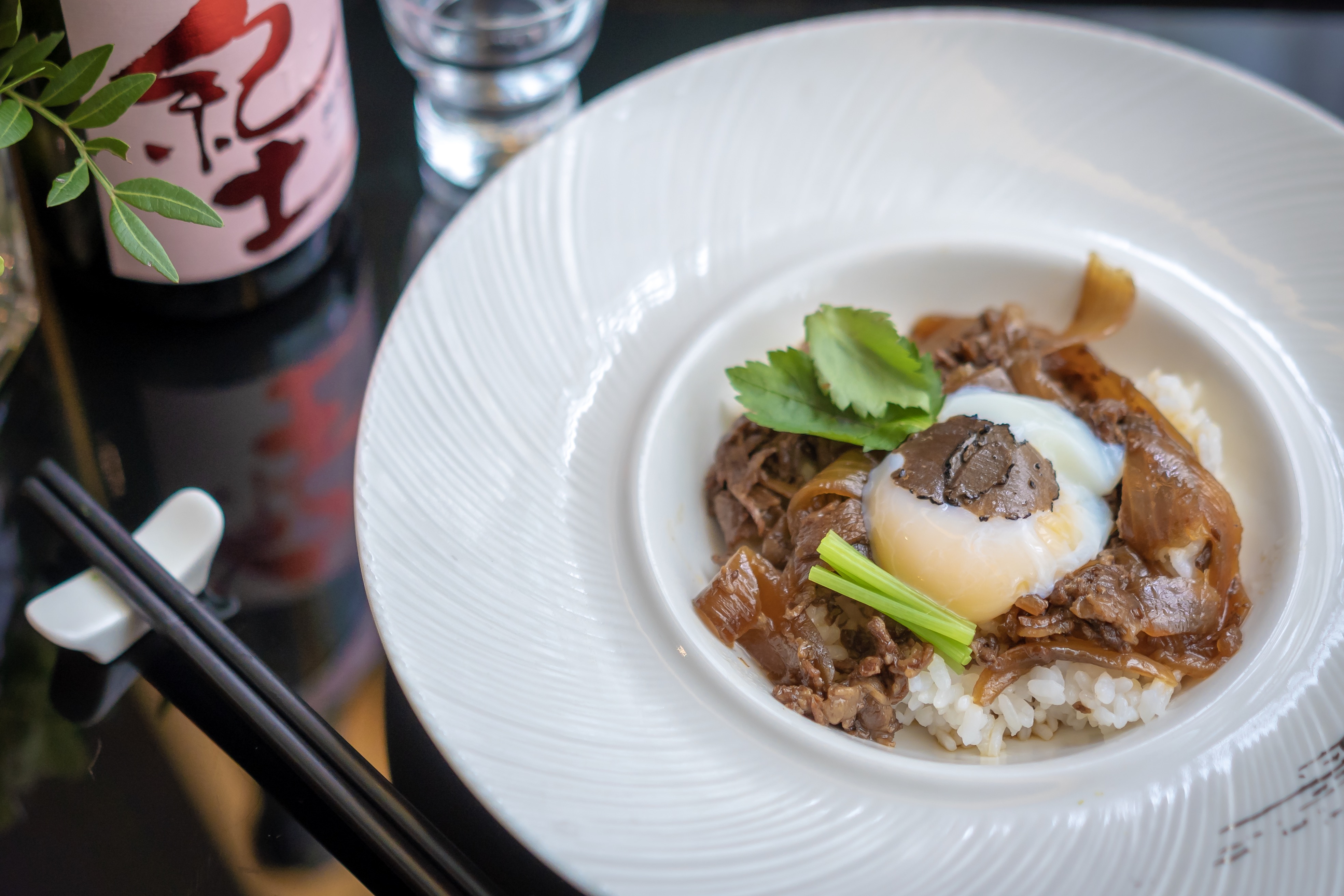 Braised Wagyu beef, sweet sauce Sukiyaki, half-boiled egg, Black Truffles, Mitsuba, steamed white rice By Audra Roslani on June 27, 2018 in