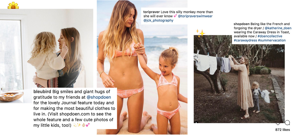 Margaret Kleveland is one of these mothers. The 36-year-old launched her California-based clothing line Dôen with her sister Katherine when her son was just three weeks old. The brand, which bills itself as elevated yet wearable pieces for the everyday, focuses most of its content on incredibly beautiful, bohemian mothers, with their equally beautiful children. “I was having conflicting feelings about what my life as a mother was going to look like, working in a hugely competitive industry that expects most people to hold down 10-hour days with limited flexibility to work remotely, or work around the obligations of being a mother,” explains Kleveland, who spent eight years building a career in footwear before launching Dôen. “In retrospect it feels like a completely insane decision but there was something about being a new mom that gave me the courage to leap.”