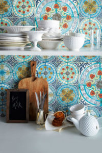 Take your kitchen back to the ’70s with bright patterned wallpaper in blues, oranges and browns. By Anne Lee on June 27, 2016 in