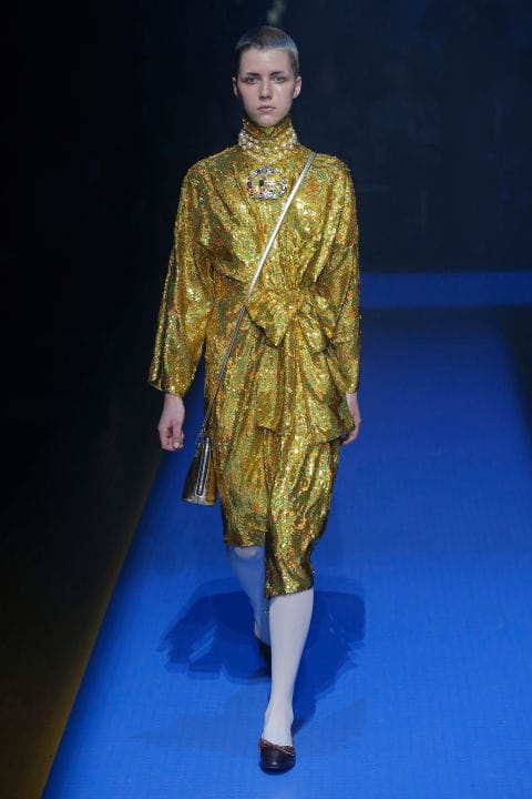 To say sequins and sparkles will be a big deal next summer is an understatement. In every fashion capital, glitter prevailed, starting with Tom Ford and Marc Jacobs right through to Gucci (pictured here), Dior and Chanel. Style yours with a sweatshirt to give them daytime longevity.