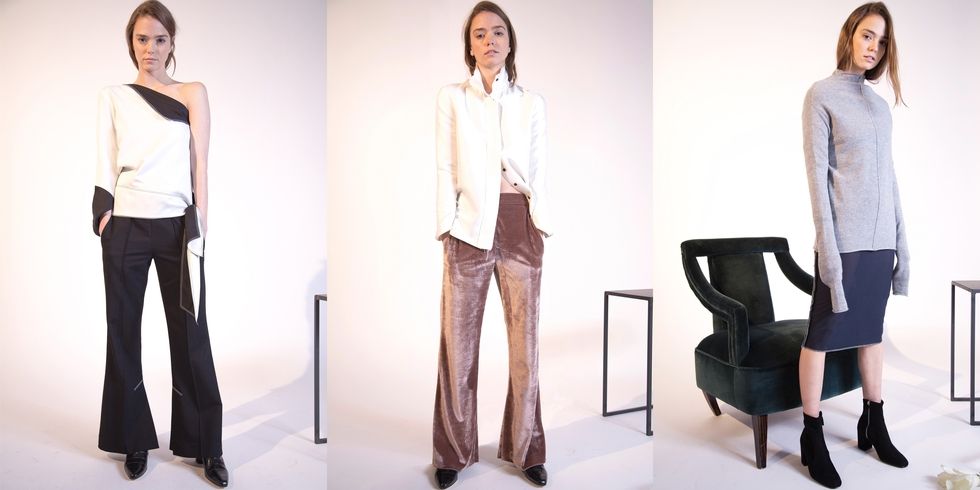 With an MBA from London Business School with a design degree from Parsons, she designs for the cerebral chic woman. She also has an impressive CV that includes stints at Burberry and Cartier. The designer’s first collection for Fall 2017 launch mixes architectural sweatshirts with clean button-downs, sheer fabrics, asymmetrical hems, curved sleeves, raw edging and more tailored pieces for a modern look at laid back ease.