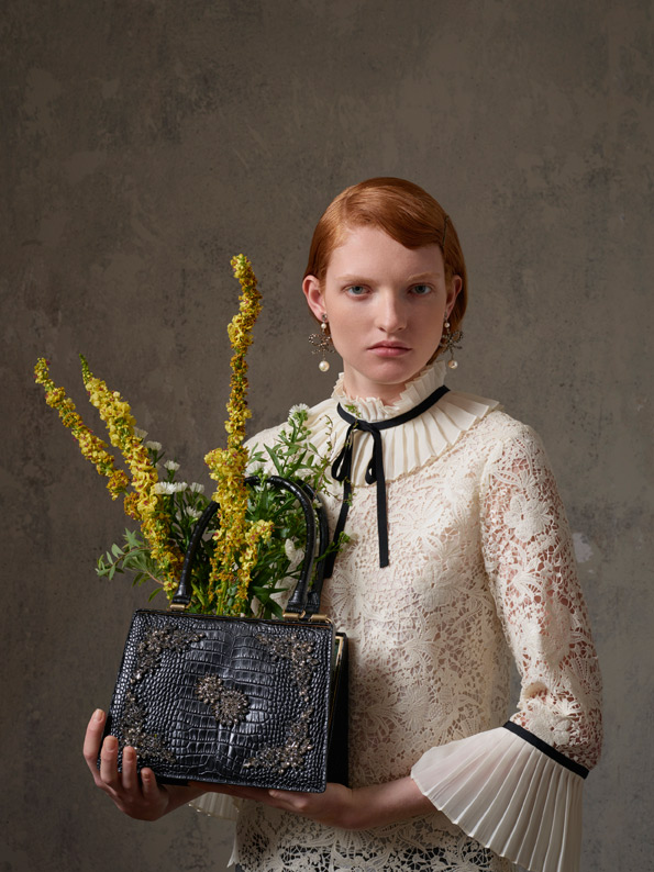 My thinking with flowers has always been about the feminine. I’m fascinated by things that imply femininity, whether it is a fabric like lace, floral prints or a certain silhouette. I think it’s wonderful that a fabric or a cloth can confuse you, and that you can’t tell if it ‘s 50 years old or 100 years old or brand new.