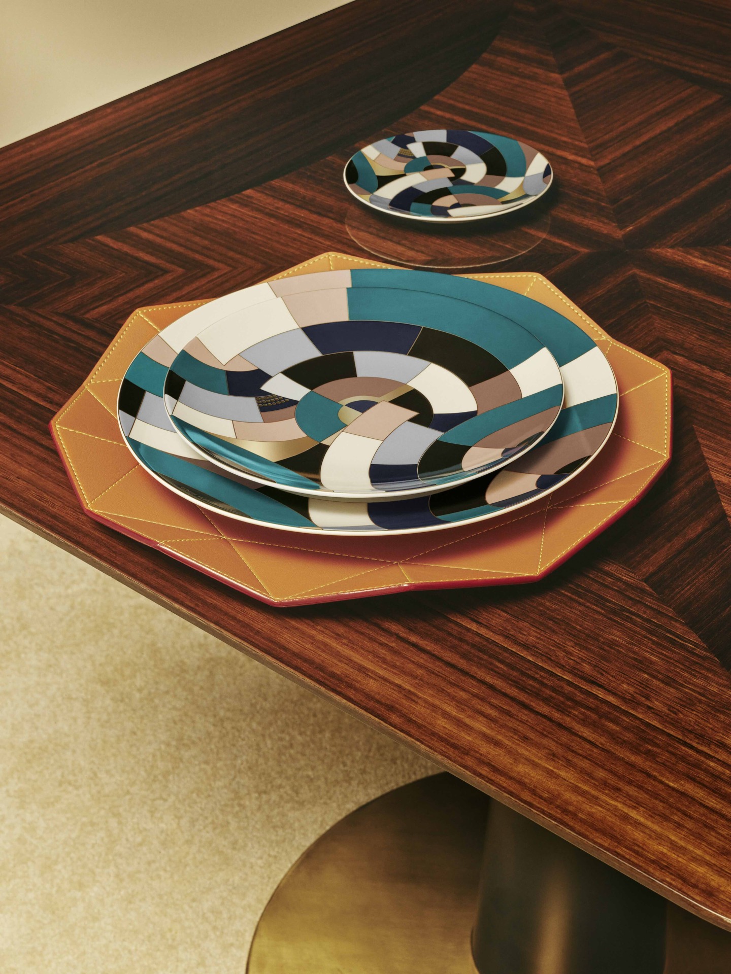 From their signature trunks to exceptional games, the art of dining, furniture and lighting, Louis Vuitton has a long history of object design. This year, the Maison took things one step further by launching a full-fledged home collection in collaboration with emerging designers, while paying homage to Pierre-Emile Legrain and Gaston-Louis Vuitton. The homeware collection deserves all the attention—drawing inspiration from an iconic book cover created by Pierre Legrain, a renowned illustrator, bookbinder, furniture maker and decorator of the Art Deco era. The piece features circular forms meticulously rendered in fine Limoges porcelain in elegant shades of green, accented by delicate gold-colored details. These stunning plates bring a piece of art history to life on your dining table.
