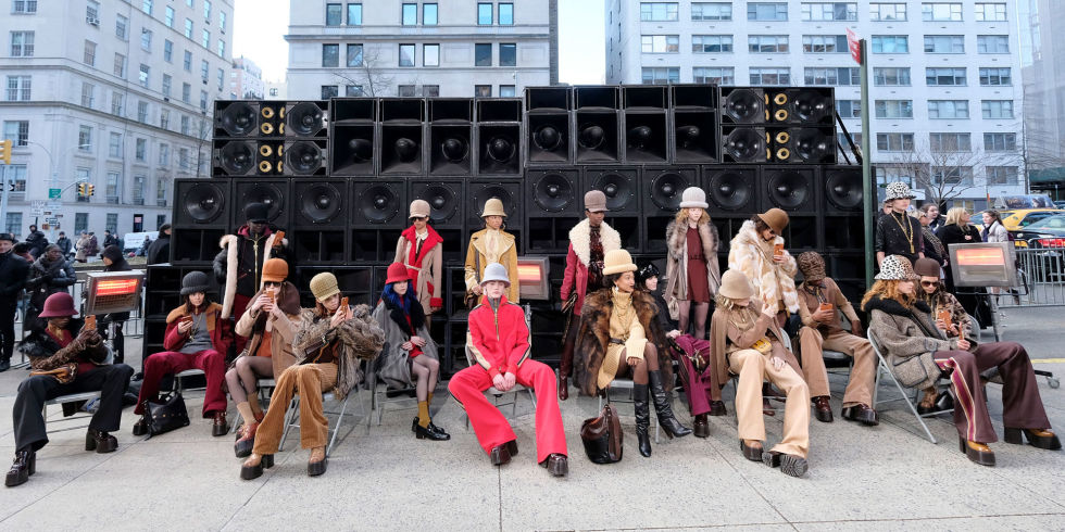 In a season where the biggest trend has been designers showing their love for New York City, Marc Jacobs’s runway was the caramel coating on the juicy big apple. Through exaggerated Kangol-style hats, Seventies-worthy platform boots, big gold pendants and a synthesis of street style spanning from the Sugarhill Gang to OutKast, his collection was a reminder that revolutions begin in the street. At precisely 2 PM, the first modesl walked out in what Jacobs called his “representation of the well-studied dressing up of casual sportswear. It is an acknowledgement and gesture of my respect for the polish and consideration applied to fashion from generation that will forever be the foundation of youth culture street style.” He was speaking specifically of the hip-hop generation of the ’70s, ’80s and ’90s.