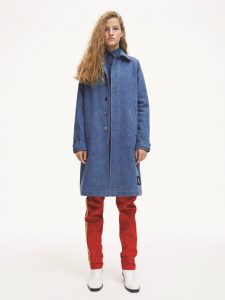 Highlights include several reiterations of denim wear and modern western utilitarian styles that paid tribute to the American classics; from cowboy denim shirts with contrasting pockets and western high rise denim pants with sporty side lines, to oversized denim trucker jacket with vibrant paint splash detailing all over the jacket and short sleeved work shirts, all styled with cowboy boots. Elsewhere, playful prairie shirt dresses were added to soften the collection’s work wear-inspired pinafore dress while rich colours appearing in colour blocks of say, a red slouchy denim jumpsuit worn over tailored yellow shirt, nod to Simon’s vision of the symmetry of modern American pop art and the iconography of Calvin Klein denim jeans.