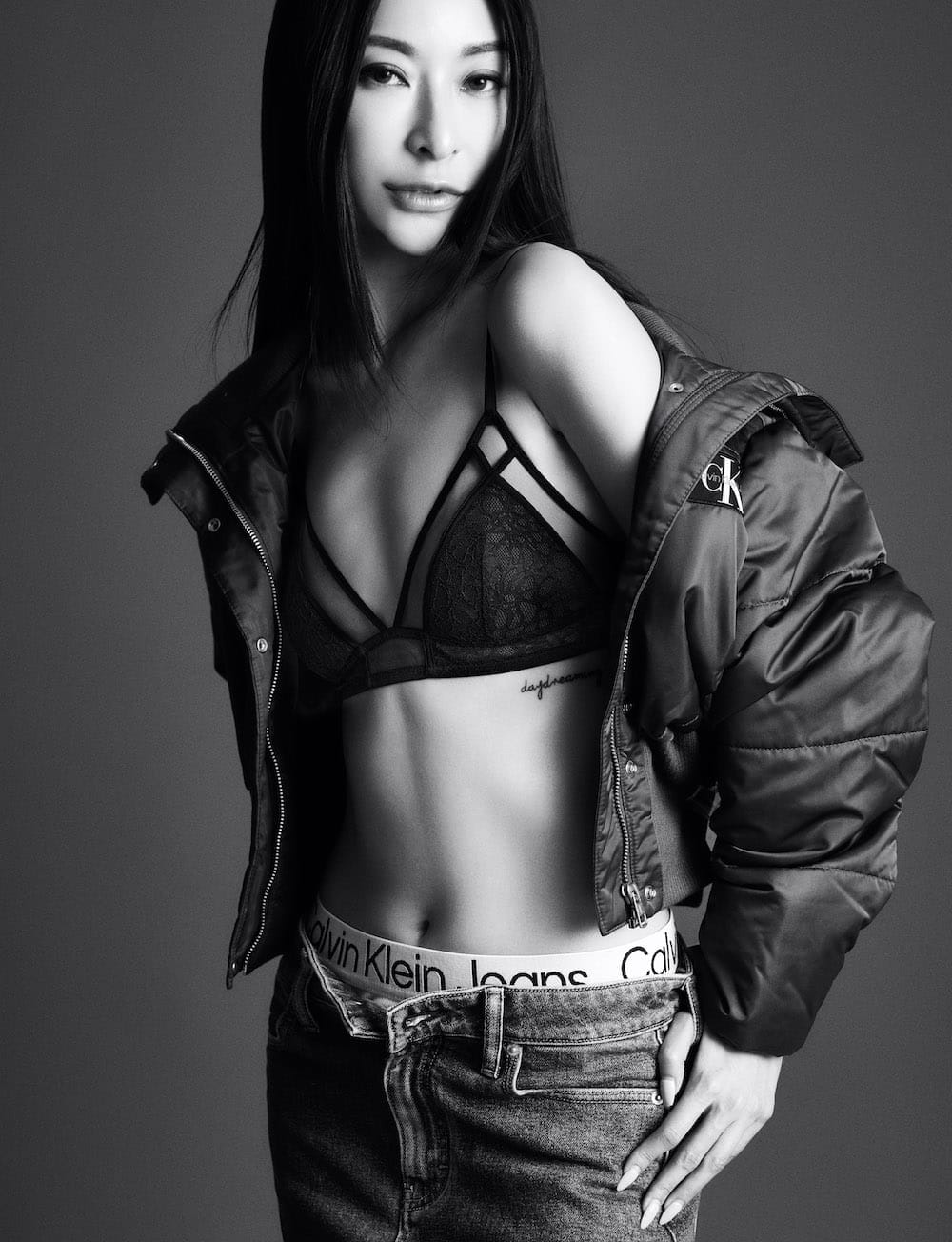 Junees Teoh and Christinna Kuan wearing Calvin Klein’s CK Black premium underwear set.