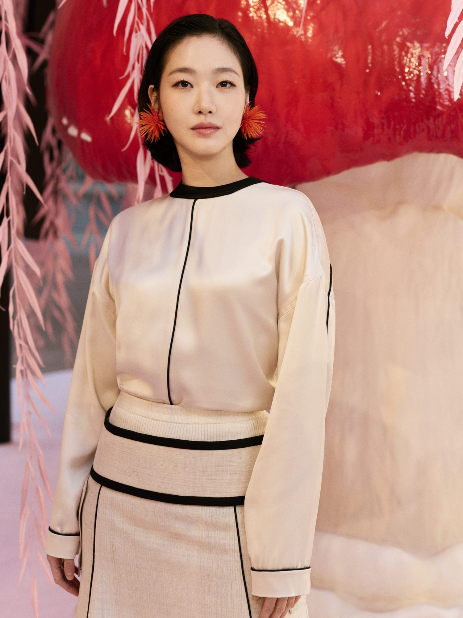 Creative director Matthieu Blazy’s first haute couture collection for Chanel was inspired by the haiku: “Bird on a mushroom / I saw the beauty at once / Then gone, flown away.” His creative vision permeated through the entire collection, including its inventive staging at the Grand Palais. The venue was transformed into a surreal, powder pink fantasy with giant mushrooms, towering trees with gently cascading pink leaves, as well as textured pink seats arranged in a whimsical spiral throughout the space.