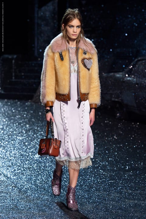 The ready-to-wear collection included everyday pieces such as leather jackets, flowy dresses, and nostalgic prints that were luxed up with the addition of gleaming sequins, silky satin, and burnished hardwares.