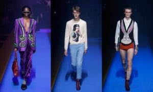 Offering a phenomenology of the dissenting spirit, Gucci’s Spring/Summer 2018 collection vibrates with an intellection tension that resists homologation. Embodying an act of resistance, every piece in the 107-look collection works cohesively to present a revolt against fixedness and for an indisputable right to difference.