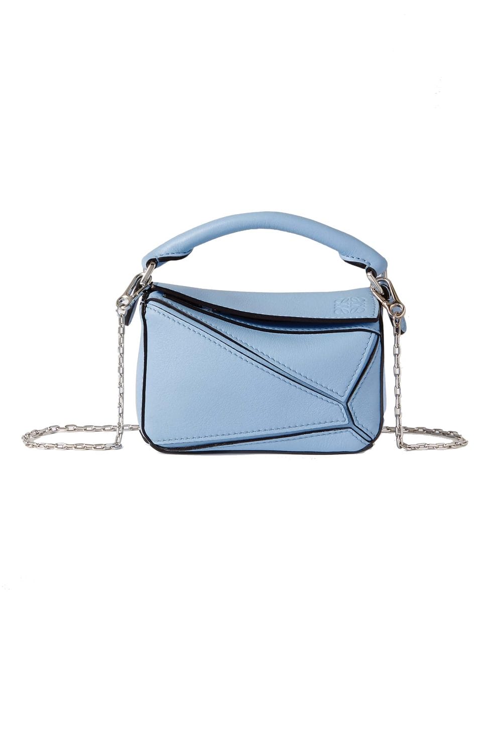 Loewe’s Puzzle bag comes in a huge variety of colours and sizes, including this nano-sized design in baby blue, which would be a lovely addition to any woman’s wardrobe.