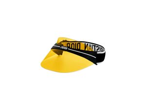 Halfway between baseball cap and sunglasses, the DiorClub1 Visor comes in yellow, grey, blue or orange and features the inscription “J’adior” along with the name ‘Christian Dior’ woven in large letters on the rear elastic band.
