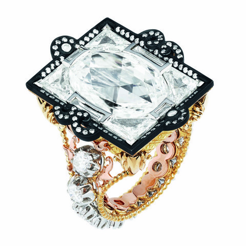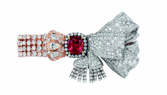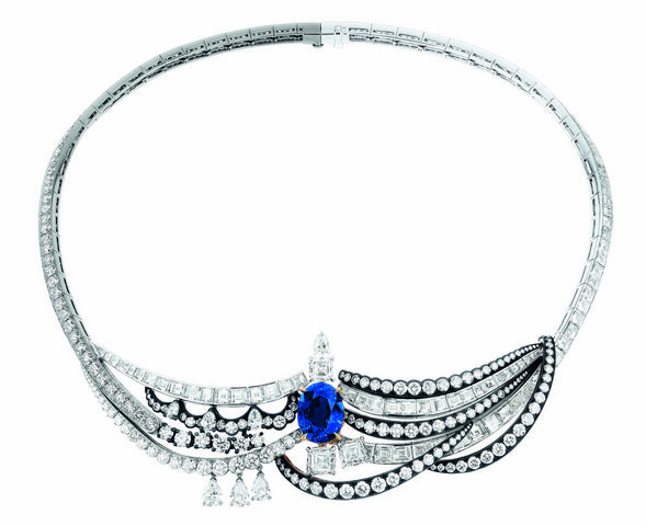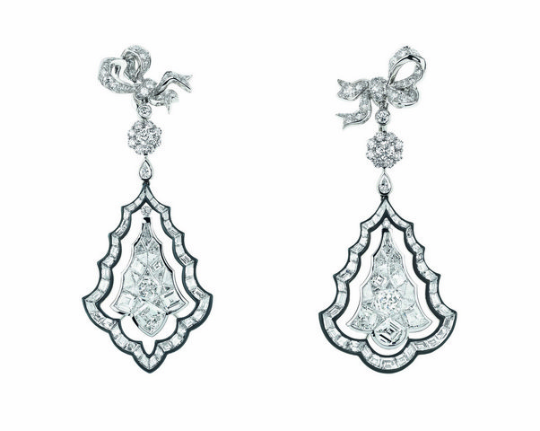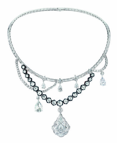 18th-century jewelry making techniques, setting clusters of diamonds against darkened silver, rose gold, white gold, and platinum, infusing them with the same aura of mystery as in the chateau’s famed Hall of Mirrors.