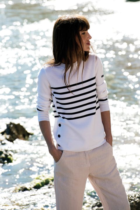 How to replicate the effortless modern elegance of Parisienne women: Prev7 of 9Next SAINT JAMES Saint James was the first label to make Breton tops on a large scale, starting with sailors and fishermen in Northern France. Nearly 100 years later, its classic Breton tops and knitwear are just as desirable now. Saint-James.co.uk Prev7 of 9Next