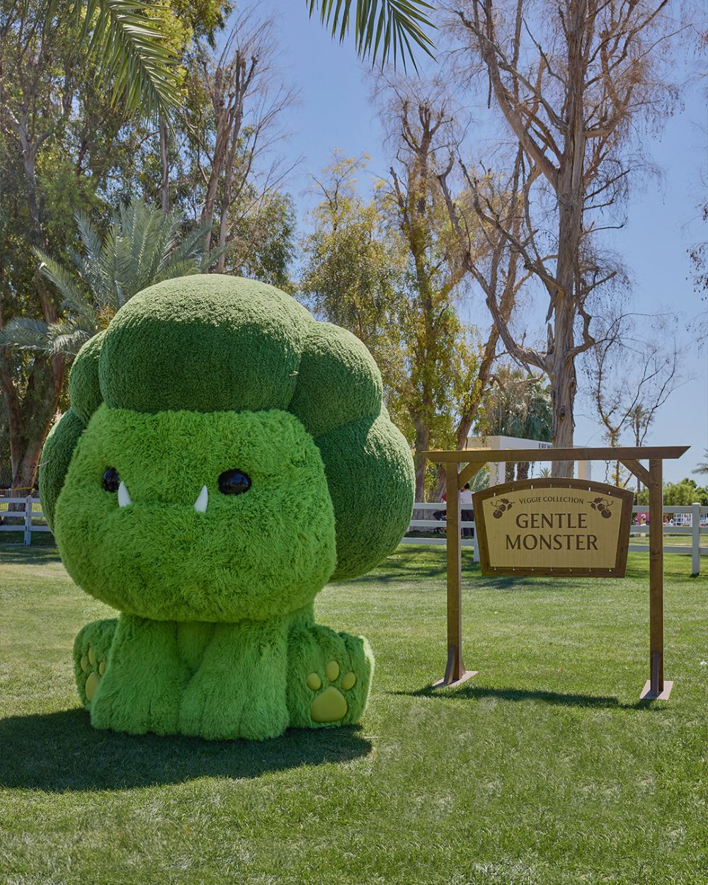 South Korean eyewear brand Gentle Monster made their presence known at Coachella earlier this month. Eagle-eyed festival goers–and spectators watching the livestream online–may have spotted the Turbo-MGD3, a futuristic design created in collaboration with F1 and Disney, on headliner Karol G as she performed her biggest hits, including Latina Forever. The conversation also revolved around Gentle Monster’s adorable pop-up in the desert. A teaser for its upcoming Veggie collection, slated for a May release, it featured an anthropomorphic head of broccoli perched next to a wooden sign.