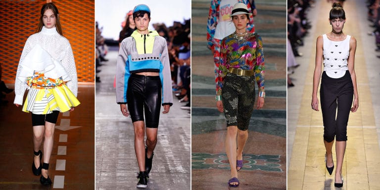 Both MSGM and Alexander Wang showed the trend in their spring/summer 2017 collections. While the former teamed the tight shorts with exaggerated volume, Alexander Wang (who also showed a pair in his H&M collaboration back in 2014) made them leather and styled them with a sporty, cropped jacket.