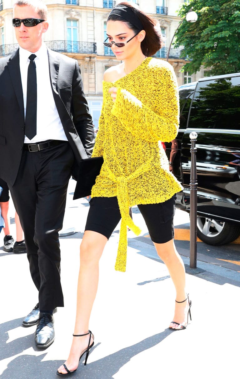 Just because you don’t want to leave the house in heels, bicycle shorts and a bra doesn’t mean you can’t wear the trend. Try teaming them with a baggy T-shirt or an oversize knit à la Kendall Jenner.