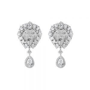While the lion made its first appearance in Chanel’s High Jewelry line back in 2012, it has since been the inspiration behind the ‘Sous le Signe du Lion’ fine jewelry collection, and now in 2018, the ‘L’esprit du Lion’ collection. Housing 53 High Jewelry pieces, the collection was inspired by the magnificent lion sculptures in gilt brass, marble, and wood found in Gabrielle Chanel’s apartment at 31 Rue Cambon in Paris. Paired with a chain to amplify its power and authority, the majestic lion adorns everything from multi-chain necklaces and chokers to open bracelets, earrings, and brooches in white or yellow gold, enriched with sapphires, diamonds, beryls and imperial topazes.