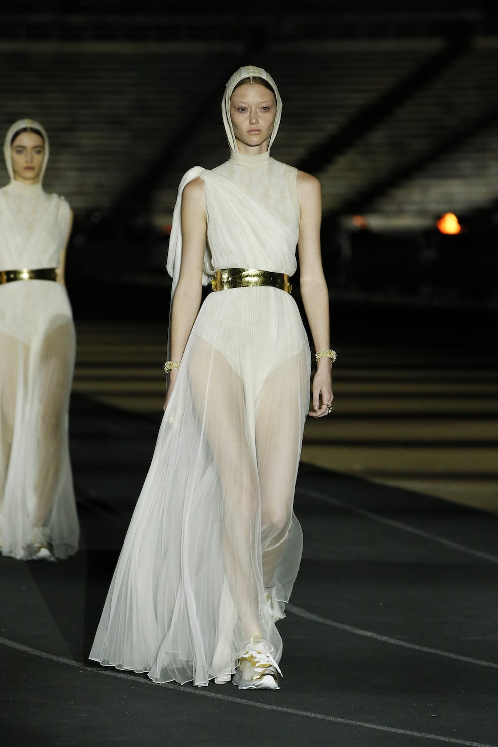 For Cruise 2022, Maria Grazia Chiuri brought us to the Panathenaic Stadium in Athens, Greece. No surprises as to what the inspiration was here. This season, fluidity and sports were a central theme at Dior, focused on the freedom of movement and ease of the human form. Echoing post-lockdown sentiments and cravings? Perhaps. Swirls of flowing white peplos dresses floated down the runway, armoured with beaming radiance that took shape as golden flashes on shoes and belts. The modern Goddesses who roamed the track in trainers and boots were confident and carefree. Now and again, athleisure broke through the calm in swatches of mesmerising print and colour—Greek blue was most prominent—followed by contemporary ready-to-wear pieces treated with sporty elements and harnesses that brought images of gladiators to the forefront. As always, feminism works her way into the folds of the collection with effortless grace. Light as her footsteps may be, she bore an empowered and confident demeanour that revelled in the delights of freedom and nonchalance—a vision of modernity and sophistication.