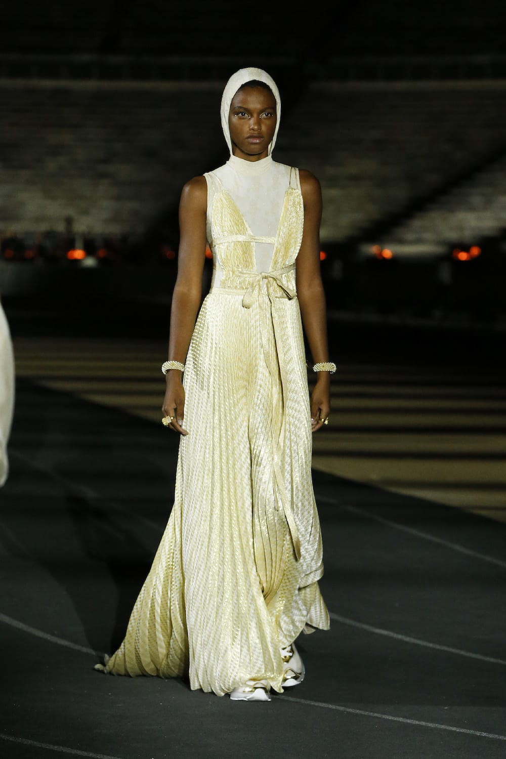 For Cruise 2022, Maria Grazia Chiuri brought us to the Panathenaic Stadium in Athens, Greece. No surprises as to what the inspiration was here. This season, fluidity and sports were a central theme at Dior, focused on the freedom of movement and ease of the human form. Echoing post-lockdown sentiments and cravings? Perhaps. Swirls of flowing white peplos dresses floated down the runway, armoured with beaming radiance that took shape as golden flashes on shoes and belts. The modern Goddesses who roamed the track in trainers and boots were confident and carefree. Now and again, athleisure broke through the calm in swatches of mesmerising print and colour—Greek blue was most prominent—followed by contemporary ready-to-wear pieces treated with sporty elements and harnesses that brought images of gladiators to the forefront. As always, feminism works her way into the folds of the collection with effortless grace. Light as her footsteps may be, she bore an empowered and confident demeanour that revelled in the delights of freedom and nonchalance—a vision of modernity and sophistication.