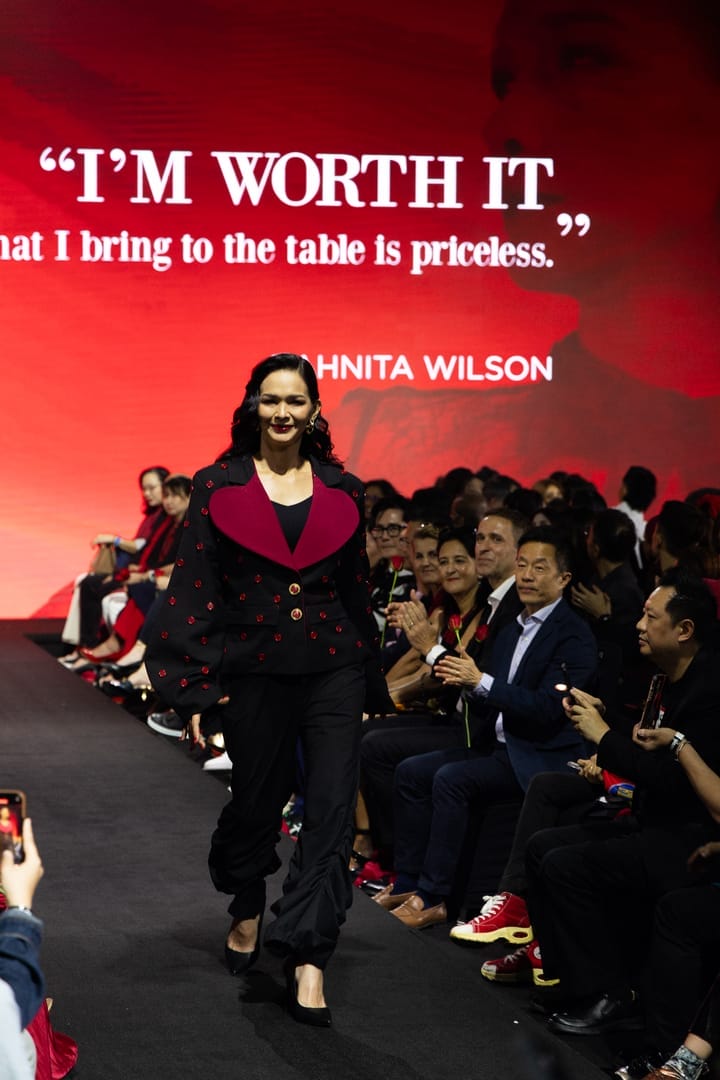 Transforming the runway into a platform for empowerment and healing, every stride and moment represents resilience and individuality through bold splashes of red—a symbol of women’s courage to reclaim their voices.