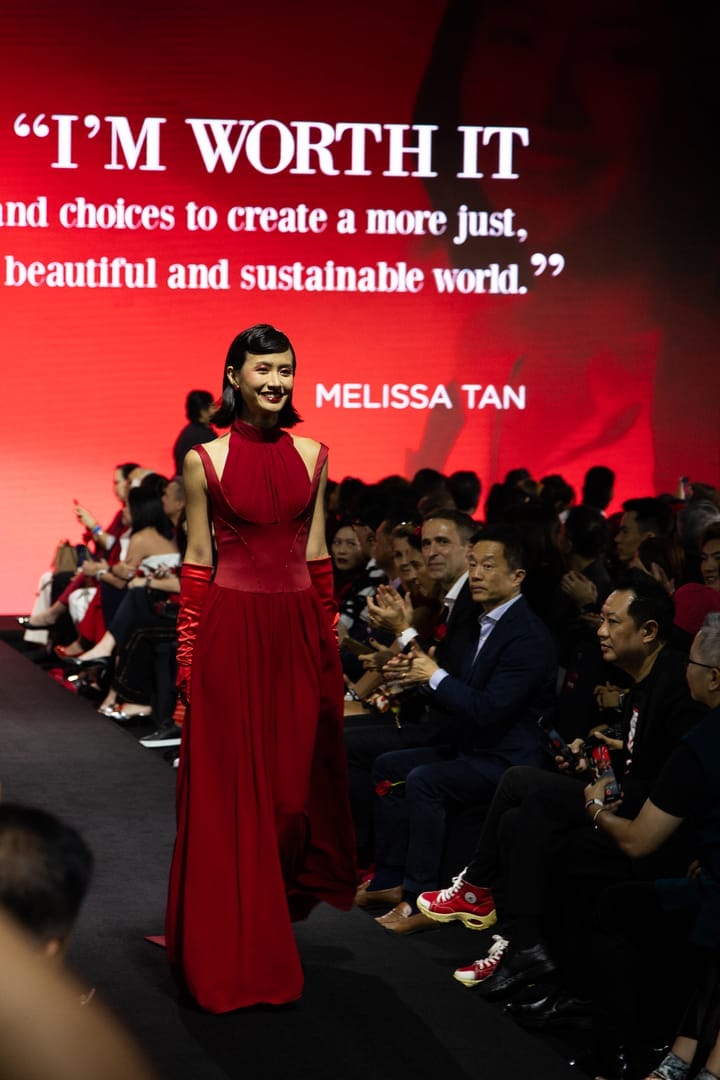 The REDManifesto also set the stage for intriguing collaborations with nine visionary Malaysian designers, each interpreting duality and feminine energy in their spectacular collections. As each trailblazing icon walked down the runway with a powerful stride, these designers amplified the meaning of strength with their silhouettes. Suet Lin embraced inclusivity through a series of sculptural designs, while Zaff Jibby presented refined, architectural pieces. On the other hand, Enya Chok’s emotionally resonant garments and Marcus Liew’s dreamlike deconstructions add to the allure of the fashion narrative.
