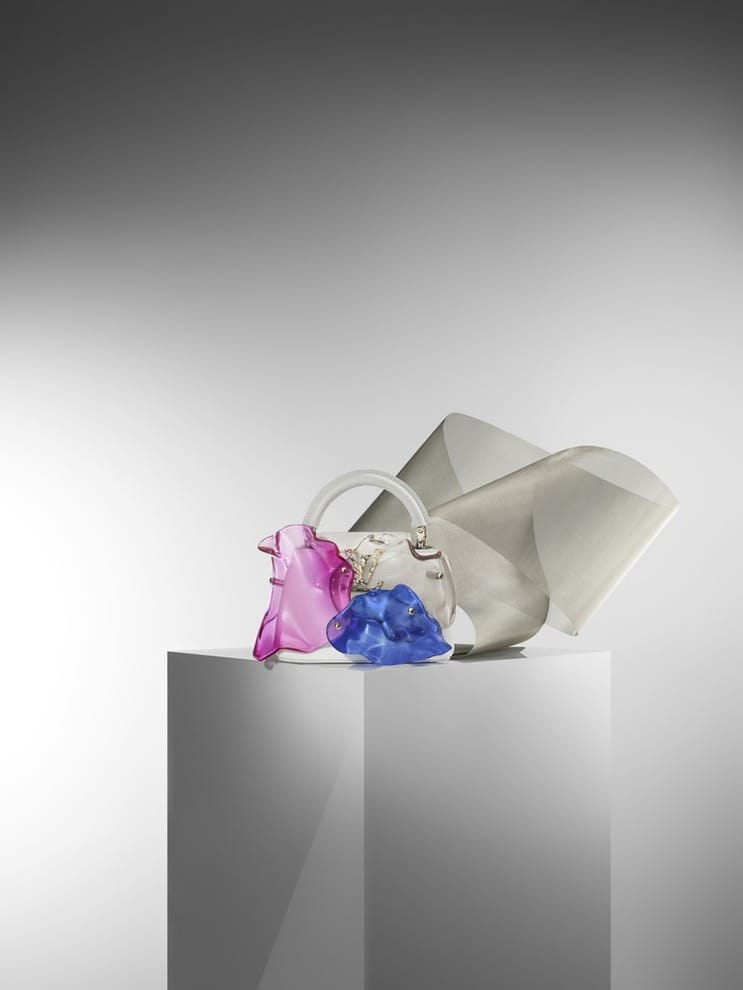 But that’s not all. The artist has translated his aesthetic principles onto the exclusive Louis Vuitton by Frank Gehry collection. Ultimately, transparency and the importance of botanical shapes are applied to the Capucines Mini Blossom and Mini Puzzle bags. On top of that, the Capucines MM Concrete Pockets, BB Shimmer Haze, and BB Analog are inspired by Gehry’s monumental architectural vision. To name a few, the Guggenheim Museum in Bilbao, the Walt Disney Concrete Hall in Los Angeles, the Museum of Pop Culture in Seattle, and the IAC Building à New York.