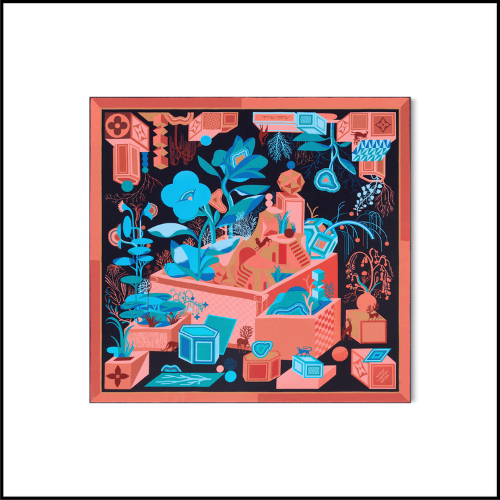 Louis Vuitton reinvigorates their beloved silk squares with an exciting collaboration. The LV Art Silk Squares collection features unique illustrations with five renowned contemporary artists. The artists include German pixel-art collective, eBoy; Franco-Japanese-Spanish design duo, Icinori; Italian artist and illustrator, Lorenzo Mattotti; French graphic novelist and illustrator, Nicolas de Crécy, and Swiss artist, Thomas Ott, all of whom have previously collaborated with the Maison on the illustrated “Travel Book” series.