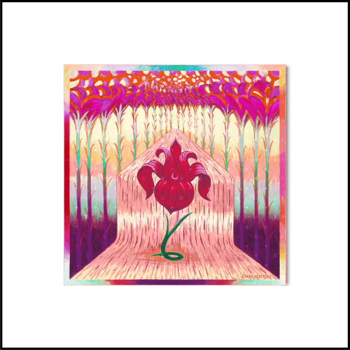Artits Lorenzo Mattotti pays tribute to a flower found in the Art Nouveau-stained glass at the Vuitton’s historic home. The iris takes centre stage in this dreamy piece, framed by enchanting trees and a waterfall.