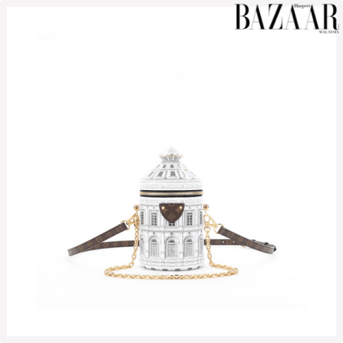 A rich combination of enticing colours and textures were utilised to bring the collection to life, in addition to marrying traditional techniques with cutting edge technology such as laser printing. Amongst its wide list of whimsical ready-to-wear, the stars of the collection include colourful velvet and mohair dresses, shiny printed jersey tops and oversized outerwear pieces to name a few. All of which feature Fornasetti’s distinctive illustrations of ancient statues and otherworldly prints. Whimsical accessories that draw on Fornasetti’s inimitable motifs such as locks, keys and portraits offer a wholesome finish to the collaboration. Accessories to note include a reimagined Cannes bag and the iconic Capucines, both embellished with Fornasetti’s monochrome architectural drawing. Louis Vuitton aficionados will also be delighted to find other House favourites such as the Petite Malle and Keepall amongst the collection’s list of fine offerings.