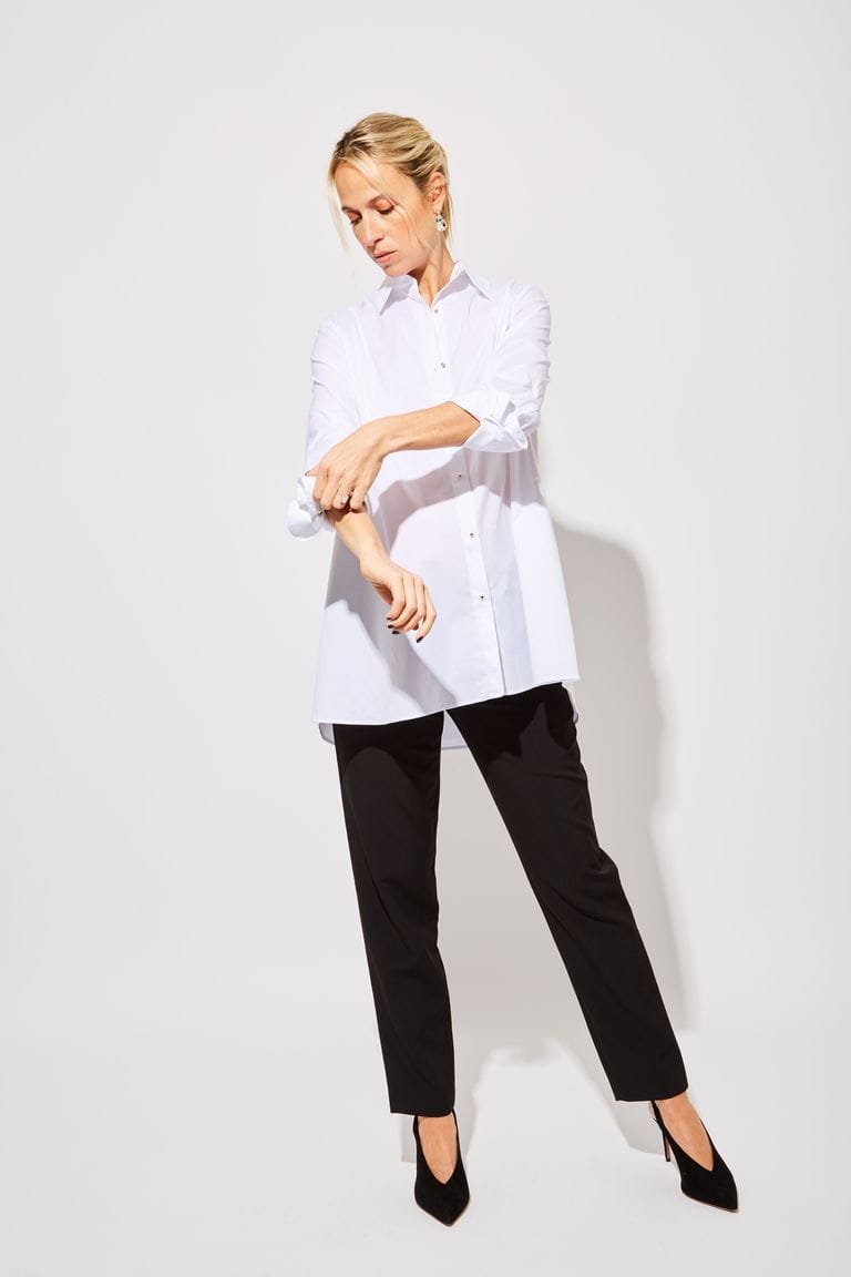 Misha Nonoo has launched her first maternity collection with Hatch. The range features two designs to be worn before, throughout, and after pregnancy – an oversized shirt and a classic shirt dress.