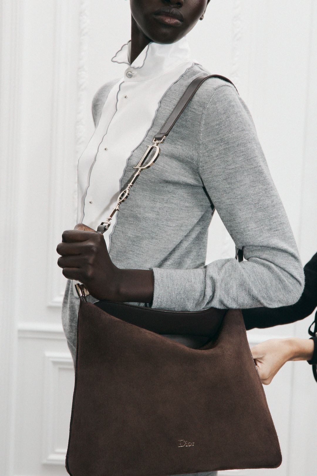 The new Diorly bag is all about functionality. Practical and durable, the spacious suede bag with its secure double flap can be worn comfortably on the shoulder.