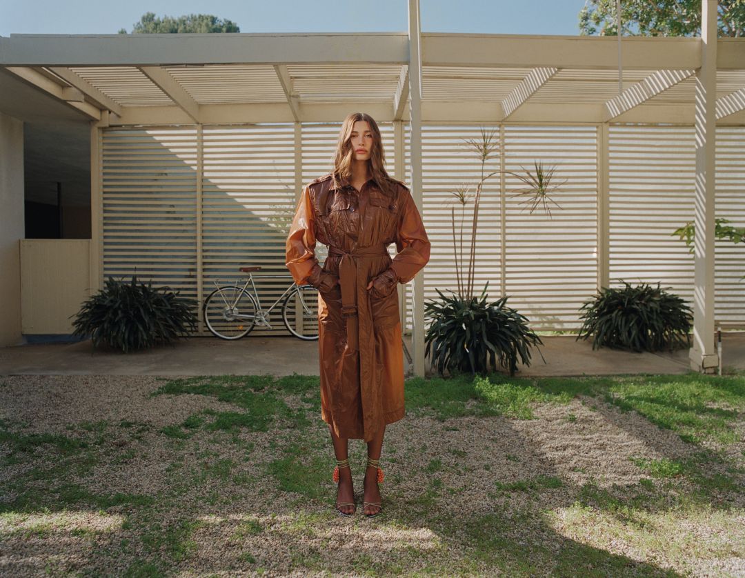 Saint Laurent is redefining warm weather dressing with its Spring/Summer ’26 collection, starting with this lightweight belted trench coat–as pictured on style icon Hailey Bieber.