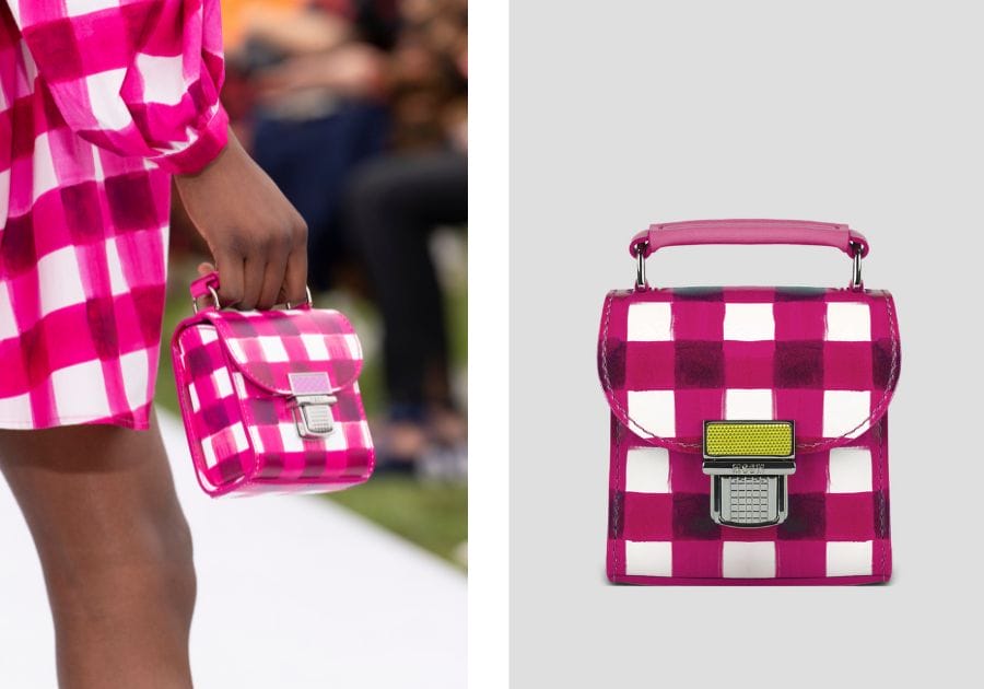 The collection's name is as fresh and simple as its attitude, originating from the repeating element that defines all creations. The MSGM style, better known as the unique snap clasp inspired by traditional school bags and satchels is a heritage reference turned-ultra-contemporary feature. With strong Vichy prints, eye-catching daisies, and "tutti-frutti" motifs in monochrome vibrant yellow, pink, and green tones, for all showgoers out there, this one is for you .