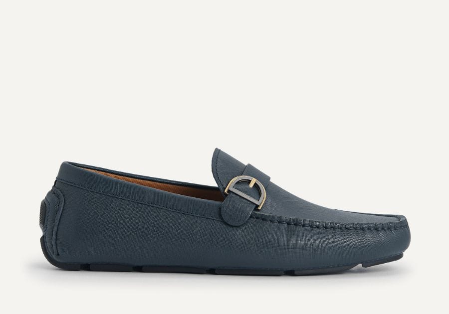 This pair of Leather Moccasins with Buckle Detail is the perfect way to accessorise your casual weekend look. This flexible piece is easy on the eyes and will undoubtedly compliment virtually any smart-casual ensembles in your closet. Made with sumptuous embossed calf leather and soaked in an astonishing navy blue, this will be the perfect accessory to go with all of your festive attires.