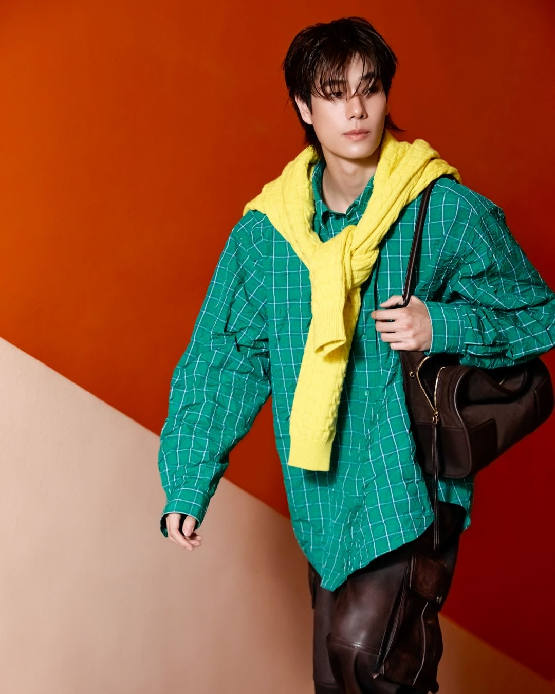 Phuwin Tang, known for his roles on Fish Upon the Sky (2021) and Never Let Me Go (2022), he was glad for the functional pieces that have been presented this season, such as the parkas and windbreakers. A hit when it debuted on the runway for its unique take on layering, these outerwear pieces are also ultra-functional, made from waterproof technical material. The layers of shirts can be removed accordingly, each sporting a different striped pattern. “It’s great for people who love to be outdoors,” he comments.