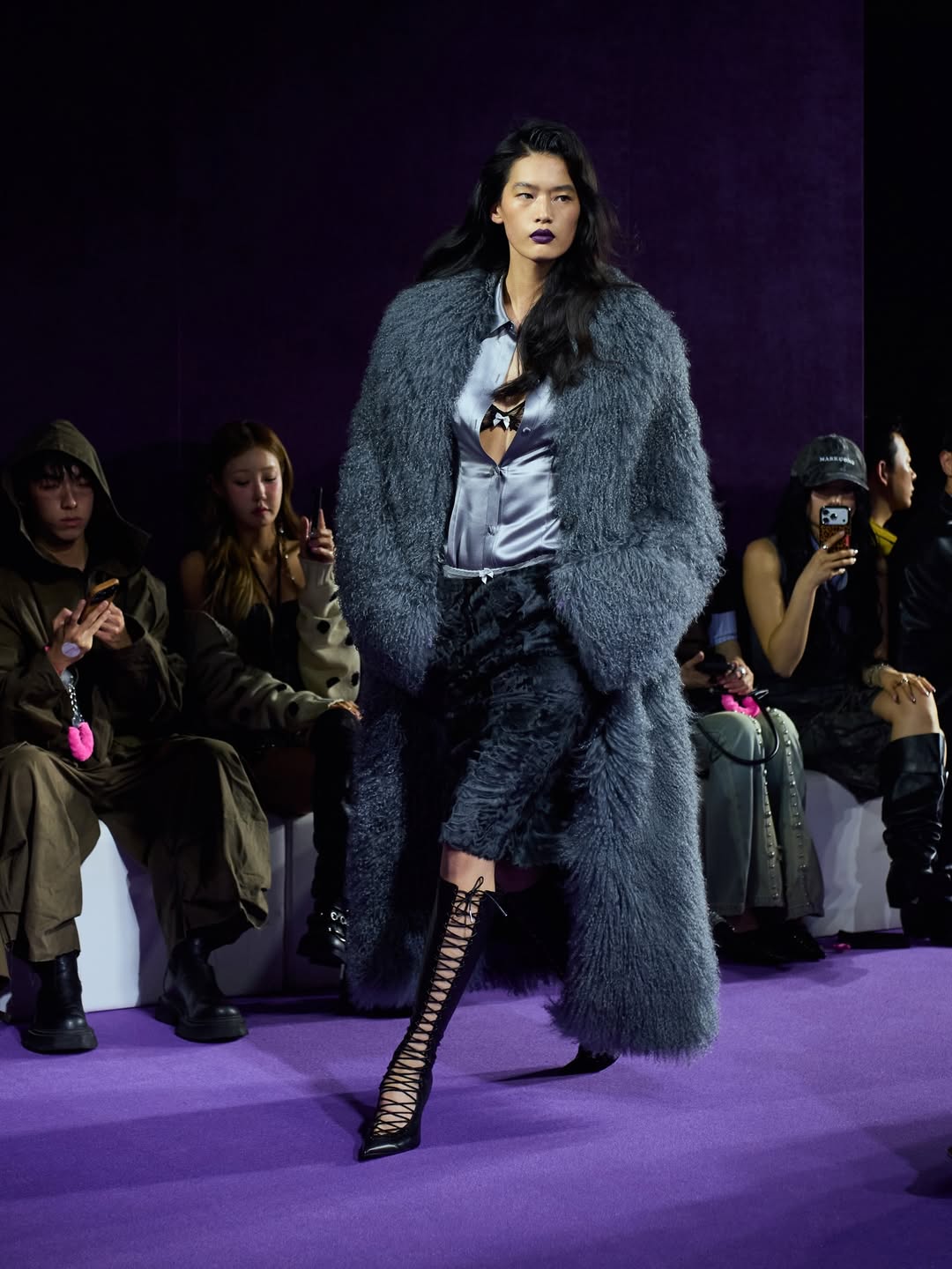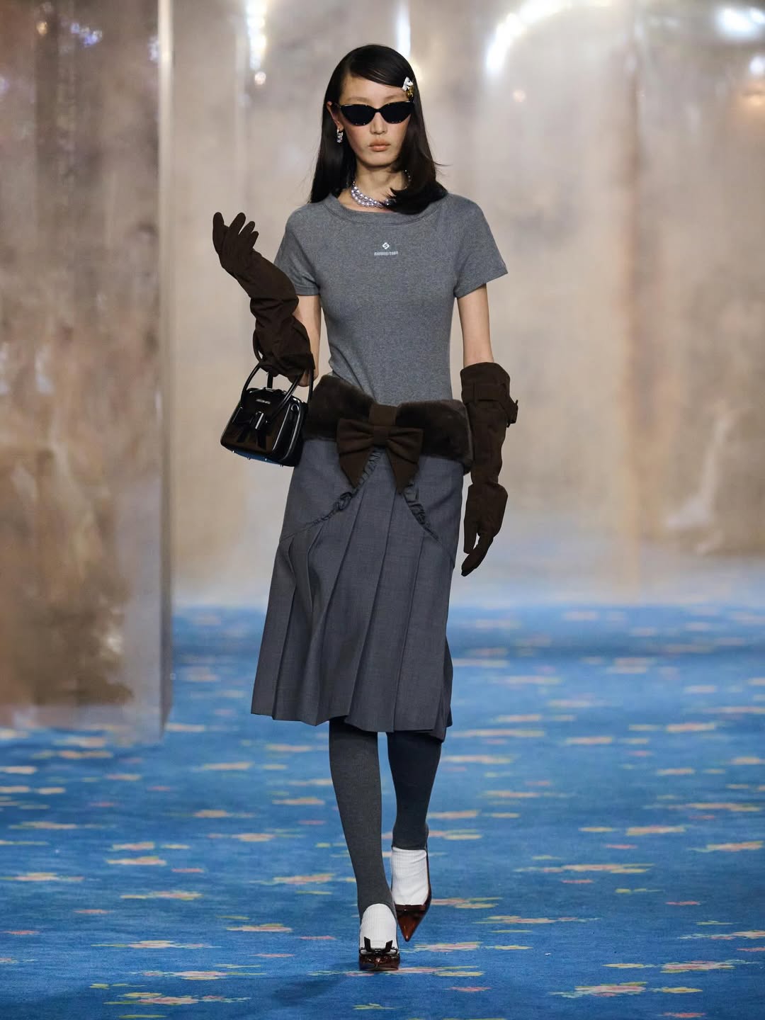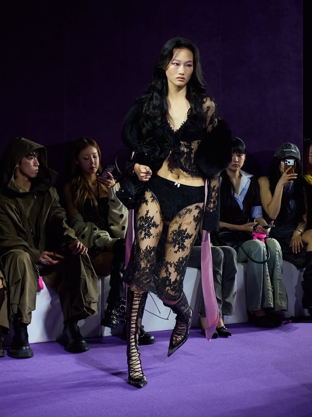 “God forbid a girl has hobbies” is one of the slogans that drives the direction of Mark Gong’s Autumn/Winter ’26 50-look collection, Almost, Baby. It accurately captures the complexities of being a modern woman: navigating desire and demureness, power and pleasure, boldness and restraint. Sartorially, this results in delightfully discordant looks with different states of undress and clashing prints. In a great move, Gong also taps Mamamoo’s Hwasa to tease one of his floral designs; the trailblazing k-pop star is the perfect Gong Girl, known for forging her own path as a musician.