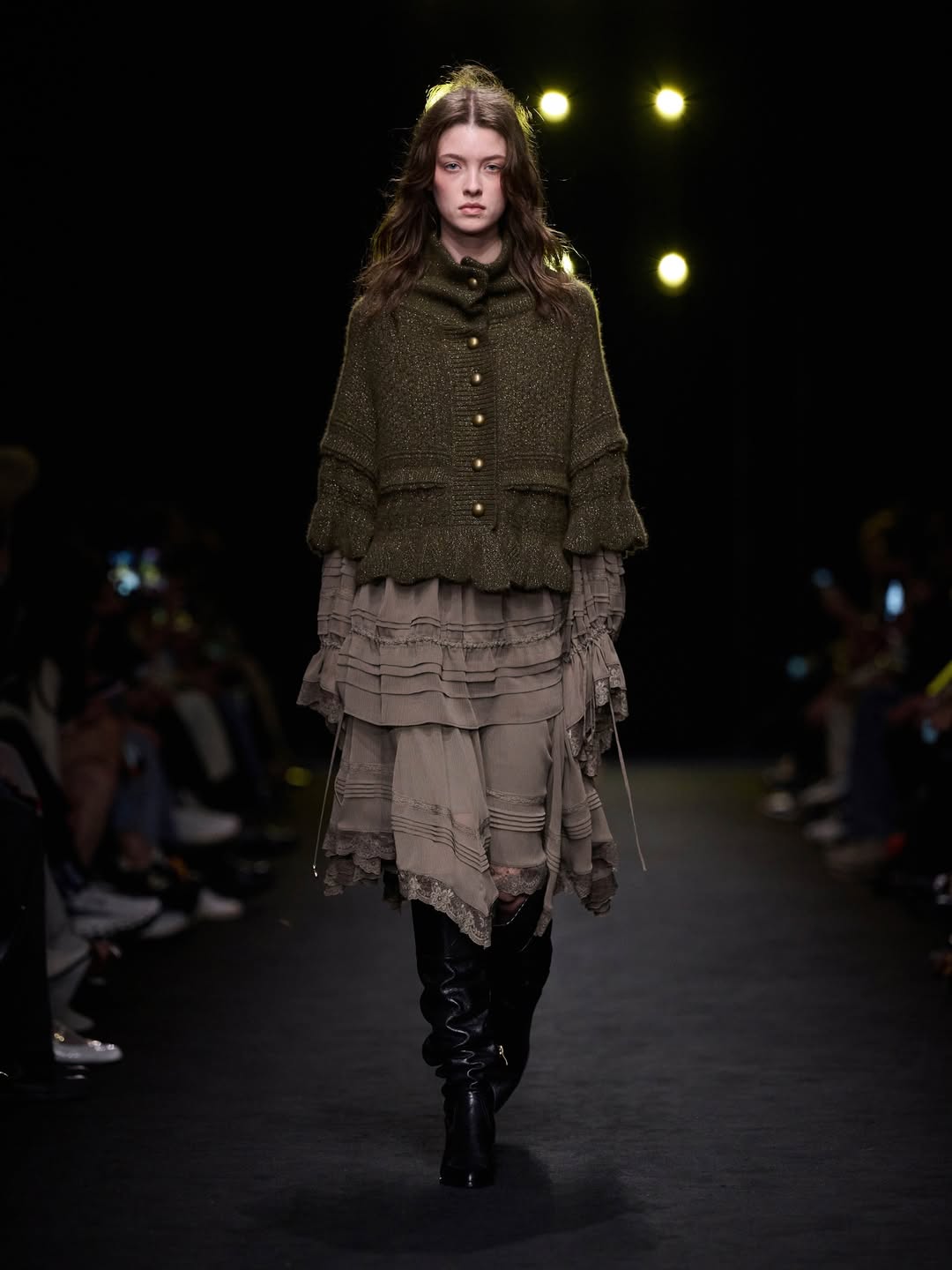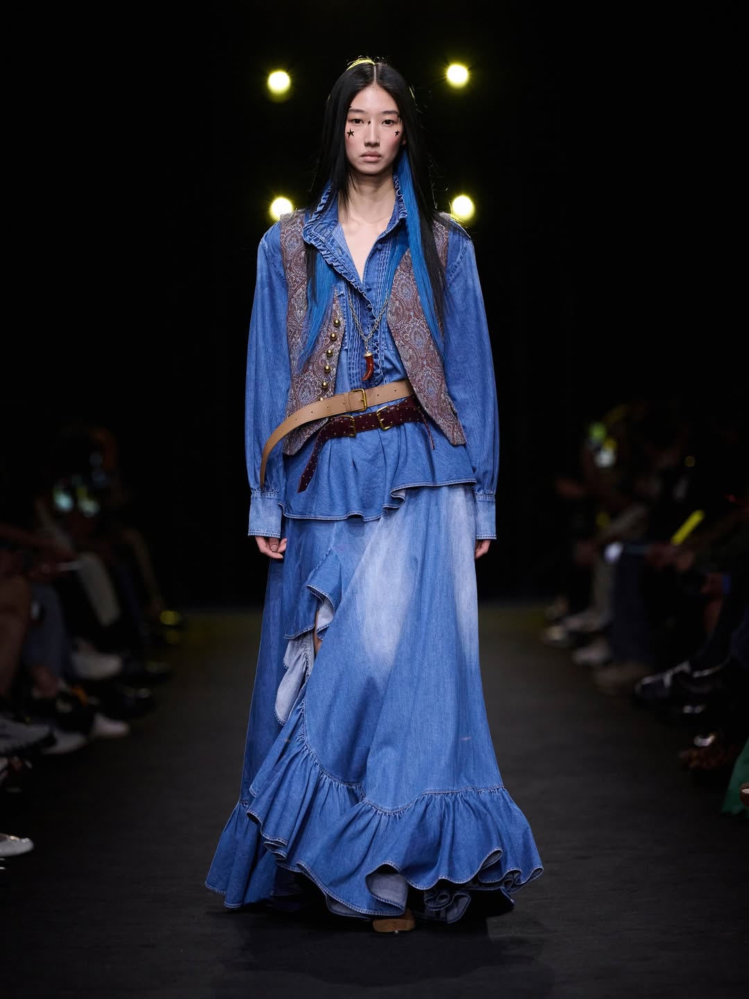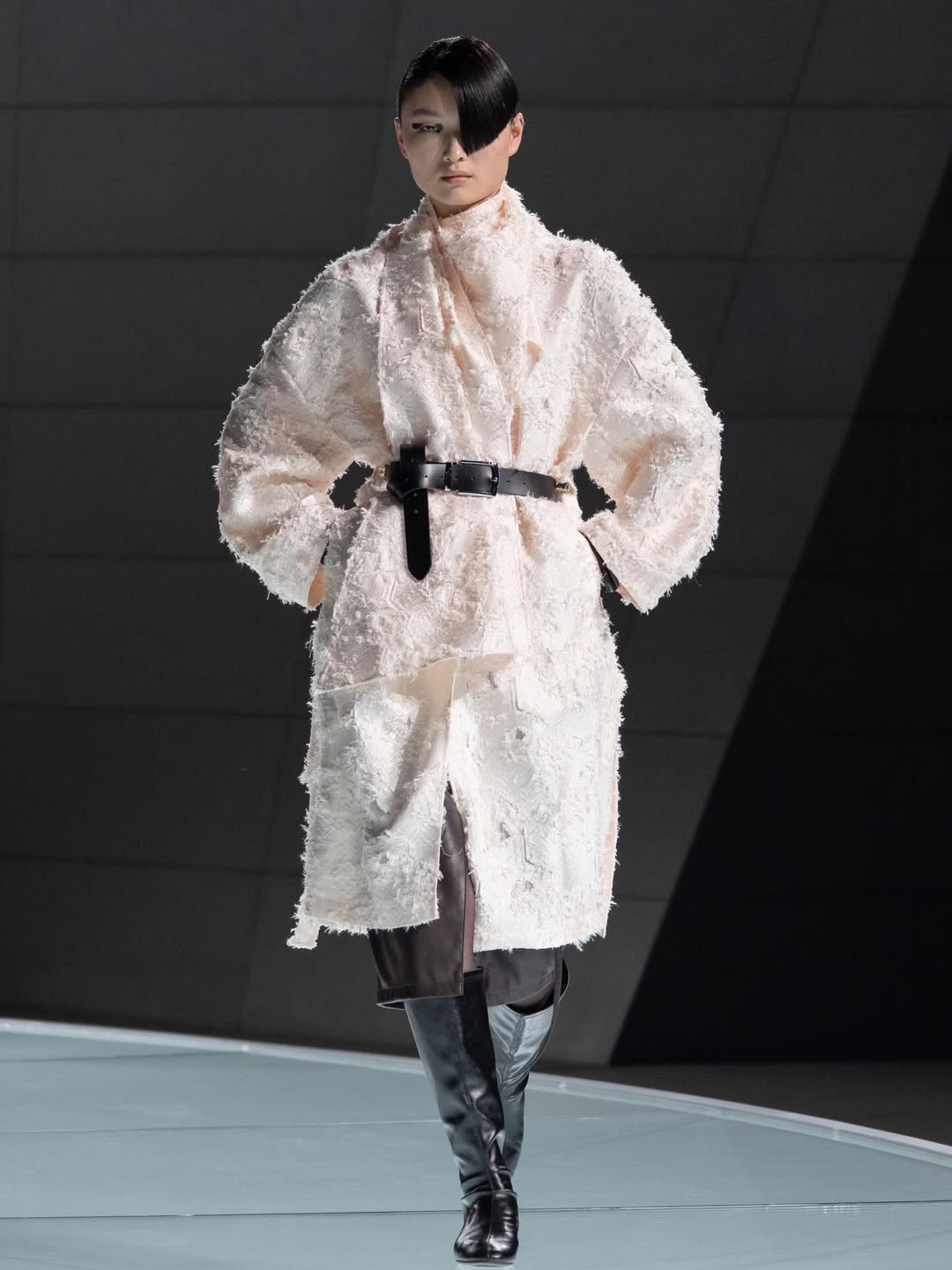 Chinese designer and Central Saint Martins graduate Xu Zhi takes us on a journey through time in his Autumn/Winter 2026 collection, Howl. The looks featuring his signature braiding adornment are visually stunning; however, the more compelling ensembles feature layered denim, faux fur, knits, and lace.