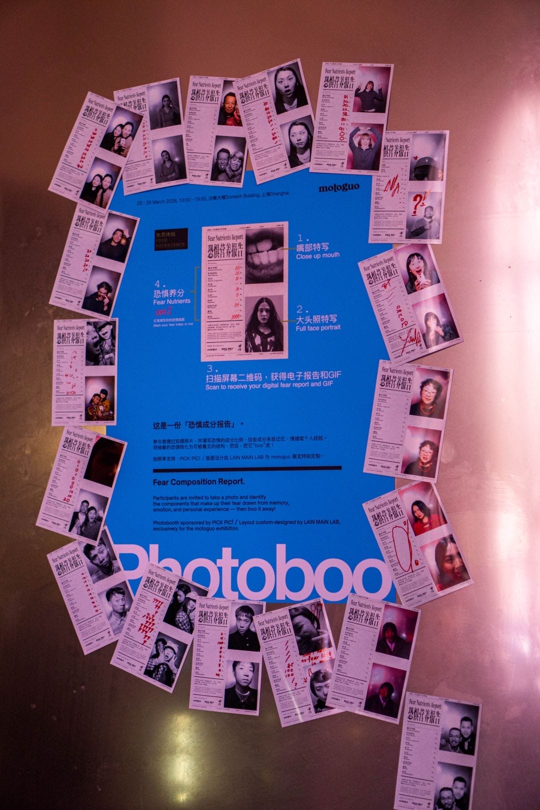 As part of this programme, Motoguo showed its Autumn/Winter 2026 collection at a showroom in Pacific Xitiandi Center with a corresponding exhibition in the Somekh Building. The latter, entitled We Eat Fear for Breakfast!, is based on the creative directors’ own philosophy and interprets the motto both literally and metaphorically. A faux plant installation, custom made by Zahuohang, is placed between window frames of the Somekh Building to resemble food remnants caught between teeth.