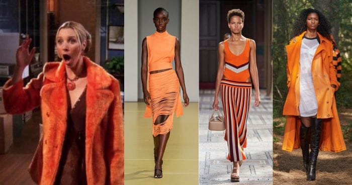 Who’d have thought that Phoebe’s iconic orange coat (worn in fan-favourite episode, The One Where Everybody Finds Out) would find some love this season in a parade of amber hues from Salvatore Ferragamo, Gabriella Hearst, Burberry, Balenciaga, Acne Studio and Versace, just to name a few.