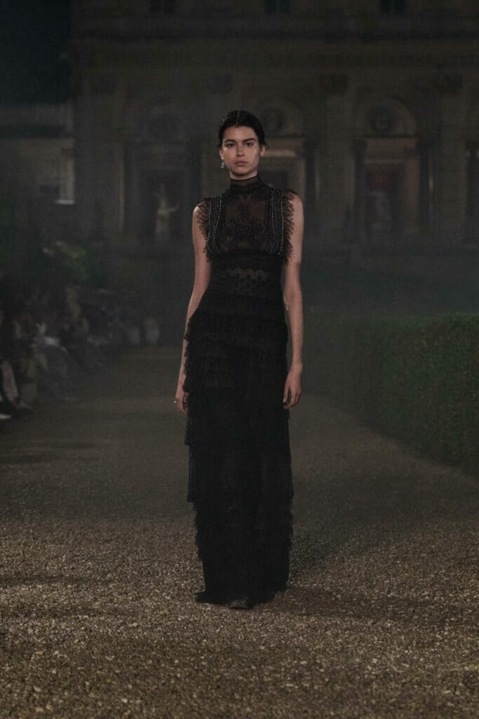 As the clouds yawned and rain spilt from their mouths, the grandiose gates of Villa Albani Torlonia—an 18th century Roman treasure—opened for a hauntingly beautiful show for Dior. Staged in the romantic gardens of the Villa, the Dior Cruise 2026 debuted its tapestry of artistic and sartorial imagination with fairytale-like silhouettes that exuded a dreamy presence while still staying grounded.